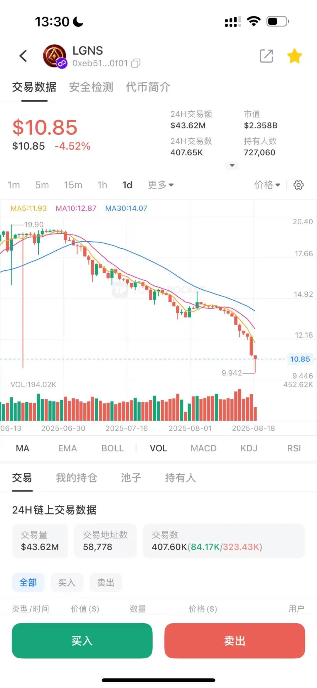 - 警告!奥拉丁LGNS币阴跌不止即将崩盘,113万投资者命悬一线!