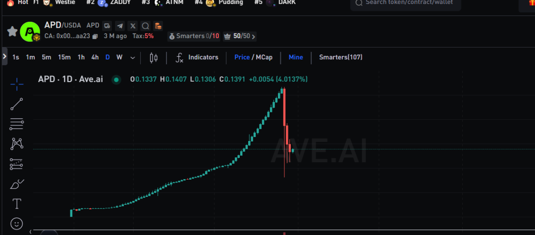 - 爆雷!“自由狗”崩盘后,暴涨百倍的地推神盘APD,也崩盘了,价格暴跌80%,直接凉凉!大爷大妈血本无归!