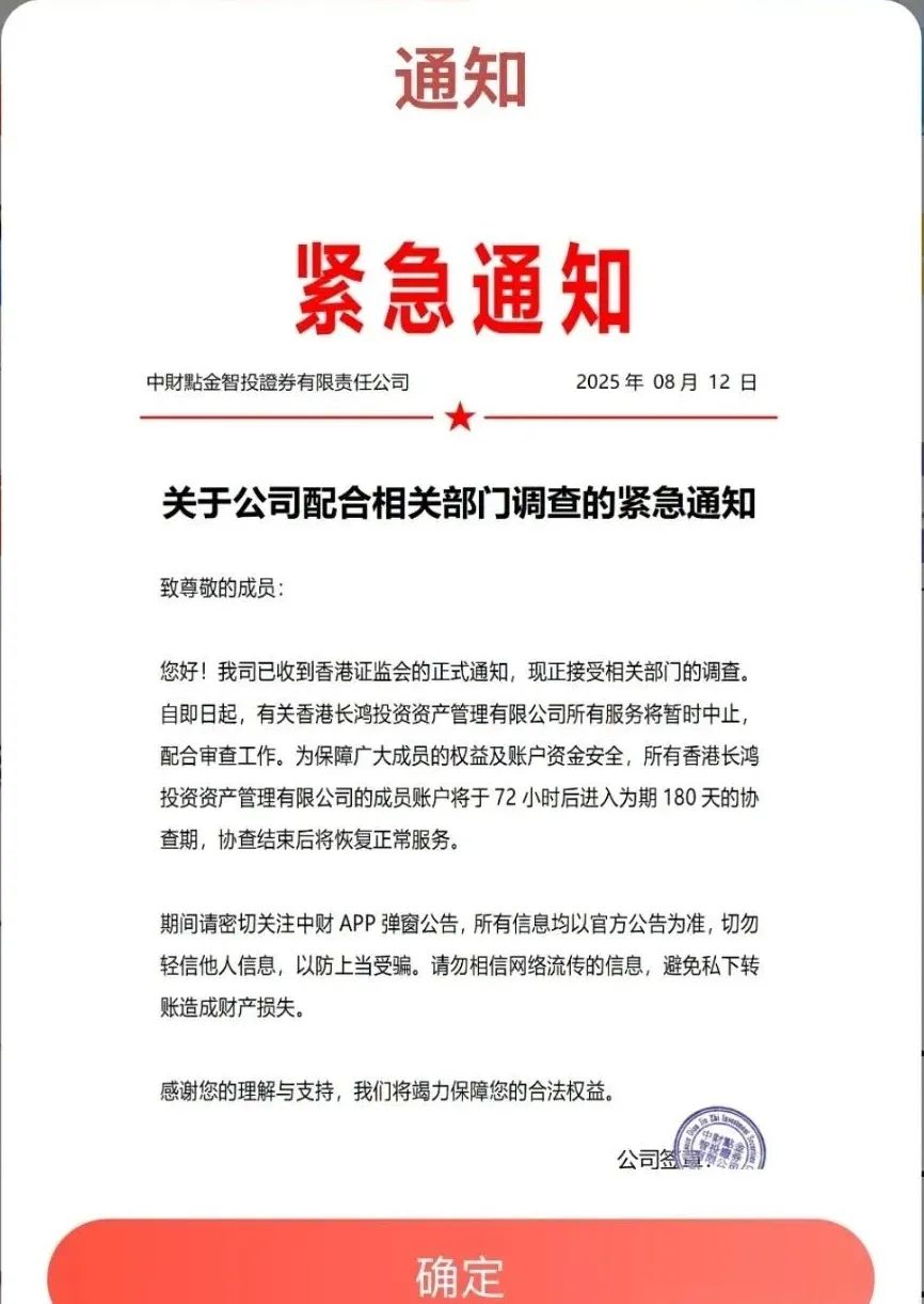 8月12日的一纸公告,打破了所有“中财点金”会员的贪婪幻想,那些每天晚上睡不着,想着第二天能在“中财点金”赚几千几万的人,那些想着能在“中财点金”里一夜暴富的人,那些看到预警文章后还不愿提现撤退贪婪的人,现在估计哭都没有眼泪!更可笑的是,操盘团伙还搞了一个180天所谓的协查期!