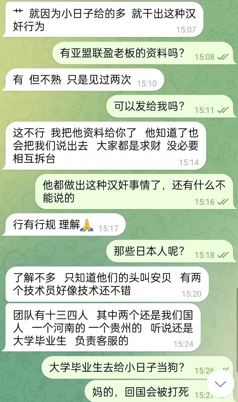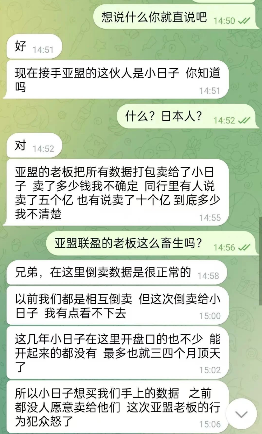 震哥今天必须跟大伙儿唠明白这事儿!亚盟联盈那帮叼人跑路后压根没消停,操盘手直接把二十多万会员资料打包卖给日本狗了!听说在柬埔寨开盘口的同行都传疯了,这叼人连祖宗牌位都不怕,就图那点黑心钱!