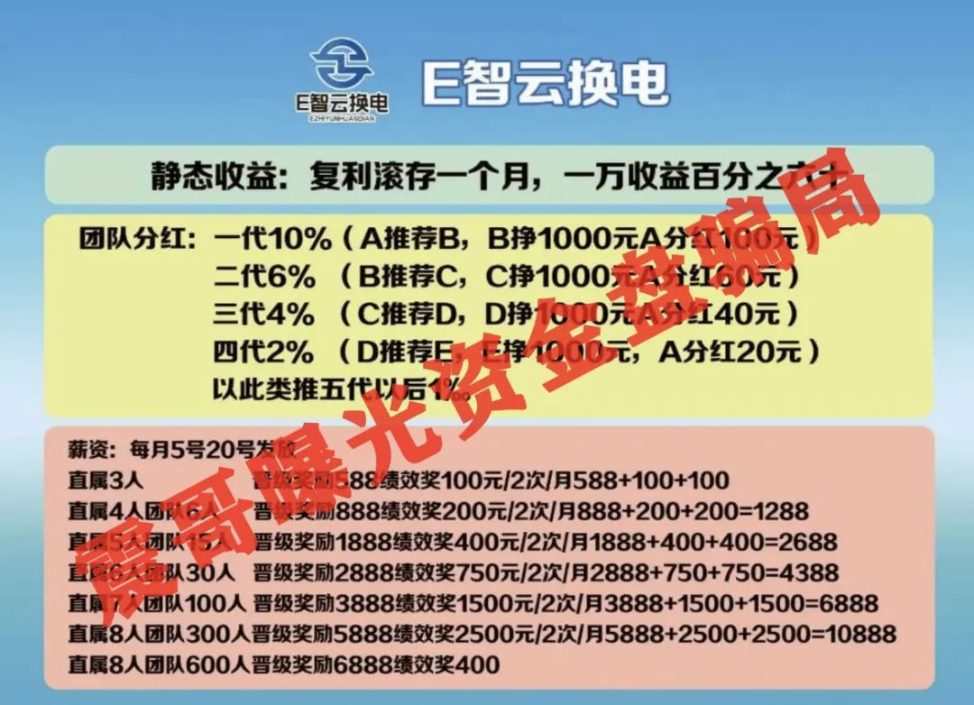 E智云还打着“轻资产加盟”的旗号,但却对充电桩的高昂成本和小区入场费等关键问题只字不提。他们的合同条款更是充满了陷阱,投资者的资金往往被要求打入个人账户,所谓的“稳赚合同”不过是一纸空文。更令人担忧的是,E智云还采用了拉人头的套路,通过推荐奖励和团队分红等方式,吸引更多人加入,这种模式与传销无异。
