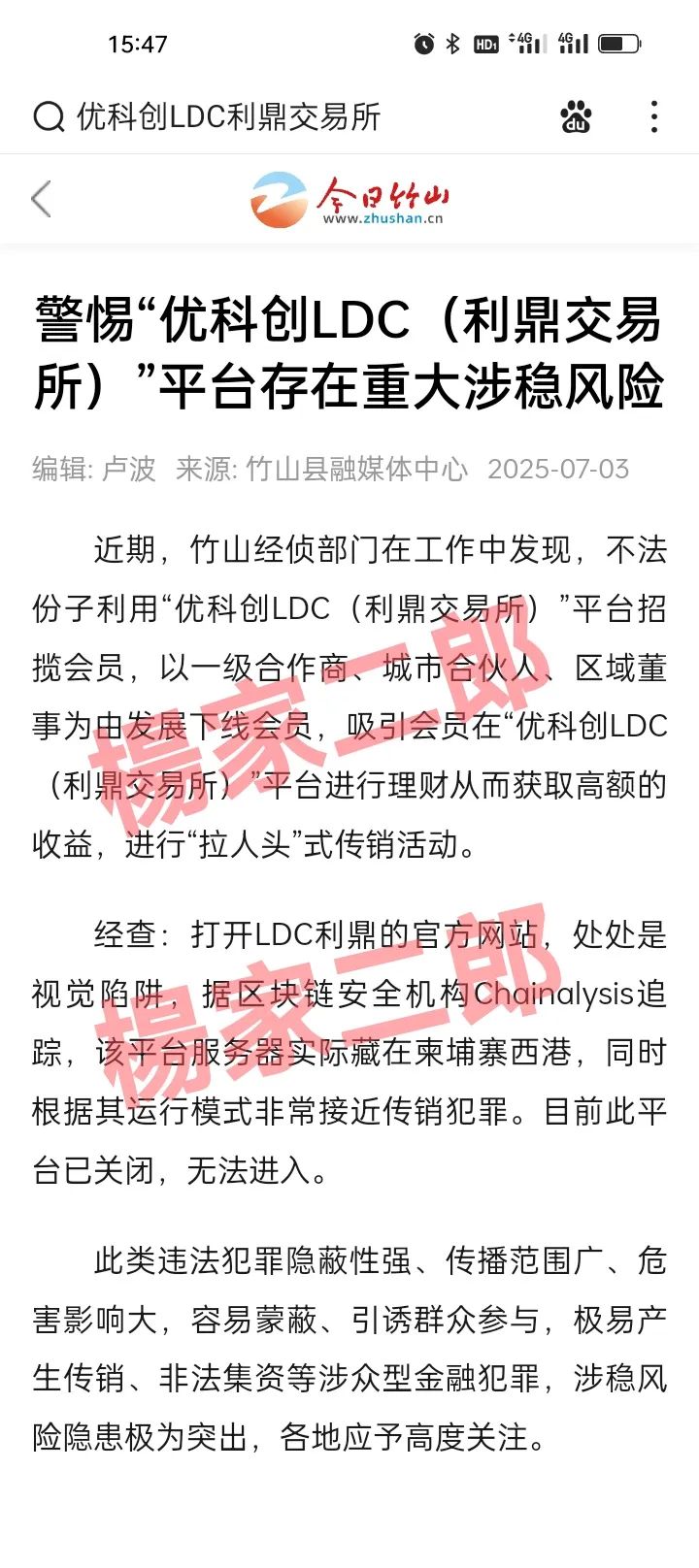 优科创LDC利鼎交易所是一个典型的跟单资金盘骗局,据粉丝透漏去年10月左右上线,今年被多地官方预警,于7月份大量单割团队及个人后 平移XM交易所继续收割,以下是其详细资料及现状: