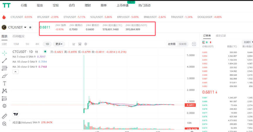 为什么现在天体比较着急,要迅速搞什么2.0版本?因为1.0臭了,也根本没有赚钱效应,看看现在的天体CTC代币就知道了,交易量是真的很少,24小时的交易量也只有不到40万U的样子。确实惨淡,这也是为啥他们在各大聊天群不断造势的原因。