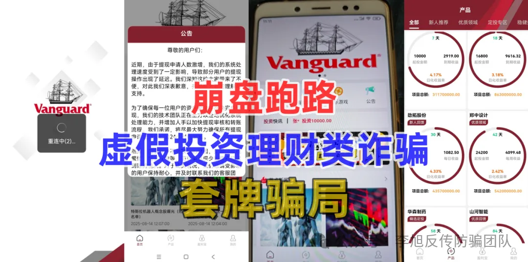 先锋领航资金盘骗局!骗子冒名美国“先锋领航集团”,伪造资质,承诺超高收益,蹭Web3.0概念行骗。用新投资者本金付旧收益,待资金池膨胀就卷款跑路。平台关闭,客服消失,全国超5万人受骗,涉案或超50亿。抖音、微信等平台监管不力。大家切勿被高息迷惑,远离此类诈骗,避免血本无归。