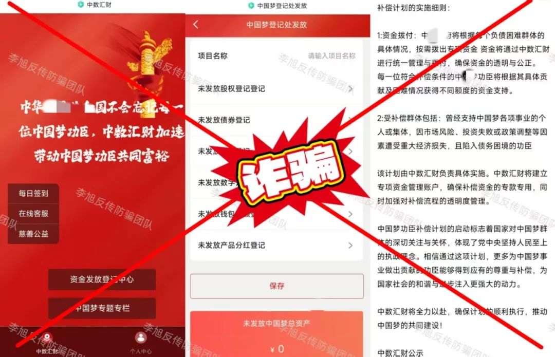 不法分子冒充国家相关机构,谎称启动所谓的“优待中国梦功臣规划”,实名注册登记就能领取“追梦未下发款项”。