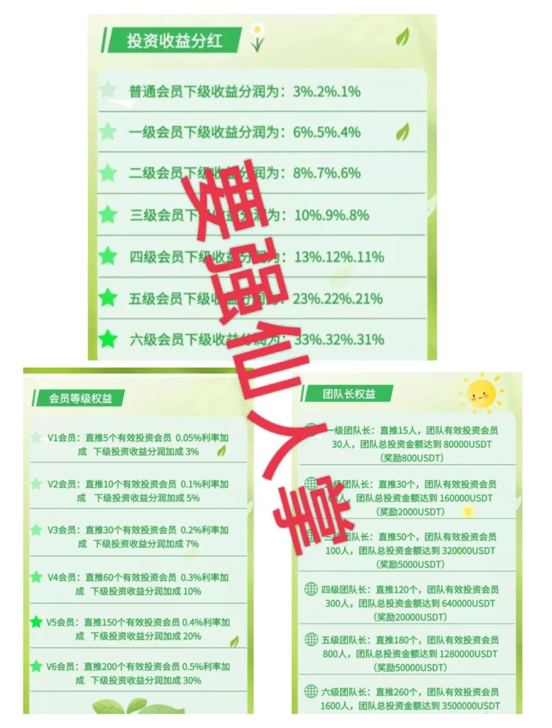 该资金盘完全背离真实商业逻辑,抛出的收益承诺离谱至极。其宣称日化0.7%-2.0%,年化收益率高达210%-700%以上,要知道,全球范围内合规的绿色科技产业项目,年化收益率普遍在5%-15%之间,如此超高收益根本不可能通过正常商业运营实现,本质就是用后入投资者的资金支付前期“分红”的庞氏骗局。