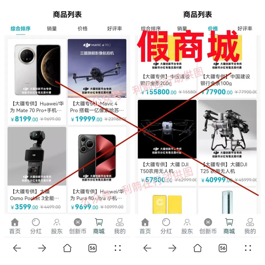在假商城里面有各种各样的商品,这些商品不可信,因为这个APP都是假的!至于宣传的创新币,是不可信的,大疆官方网站上没有关于创新币的只言片语。