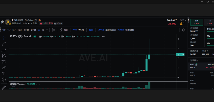 此前盘古社区的FIST拳头币总量仅1万枚,池子里的实际流通量很少,流动性极差。这种设计使得操盘方可以轻松通过控盘操纵价格,既能让价格上涨吸引投资者,也能在瞬间砸盘收割。