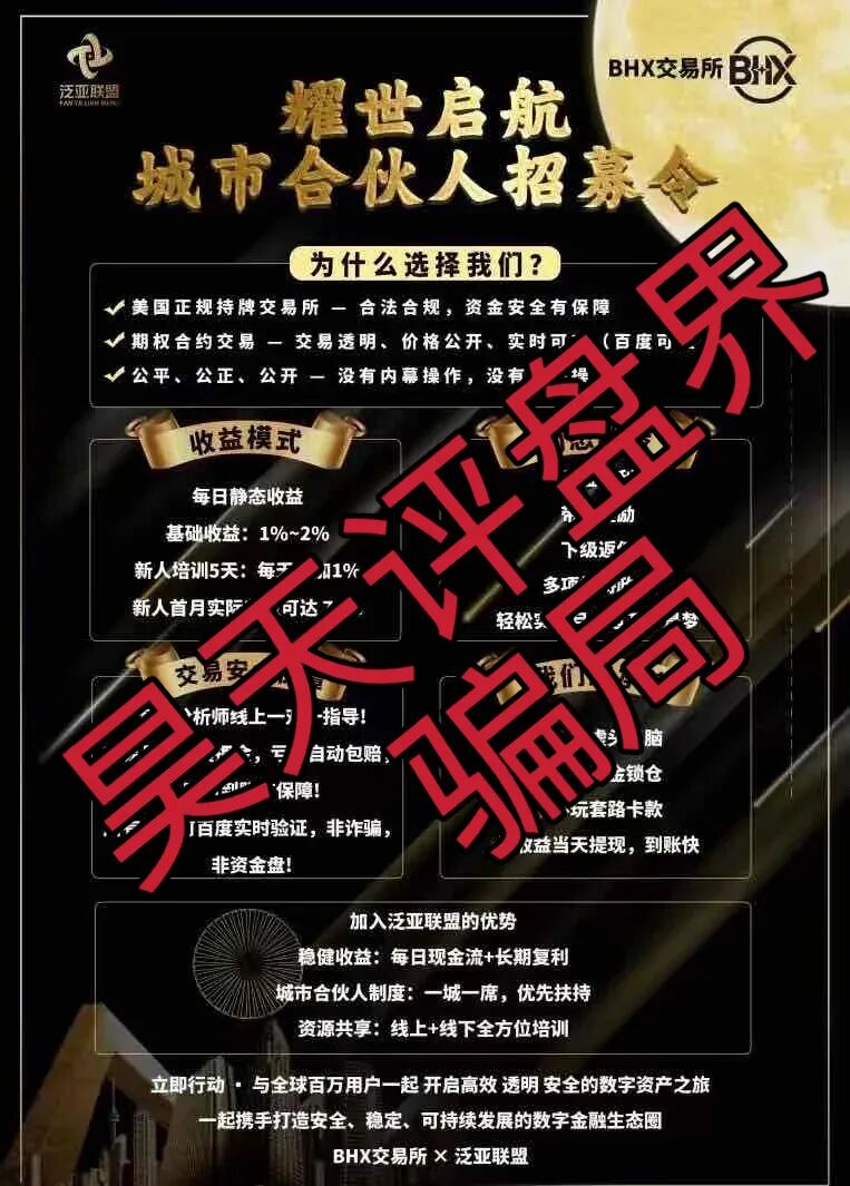 昊天评盘界:近期不少泛亚联盟BHX交易所跟单类资金盘骗局的受害者联系昊天说已经被单割了,诈骗团伙才1个月就割了?也是毫无格局,高度预警,即将崩盘跑路!此诈骗团伙包装的BHX交易所号称是拥有美国正规牌照,合法合规,资金安全有保障,实际没有一点可信度,所公布的各种牌照、背书全是伪造,这种骗局昊天已经曝光过很多了,就没有不跑路的,典型资金盘骗局:
