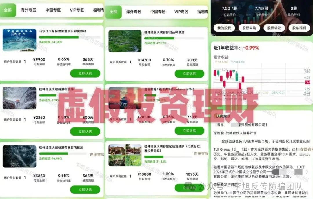 打着“景区、邮轮投资”的旗号推出超高收益的理财项目,用户根据投资金额和周期获得高额收益。