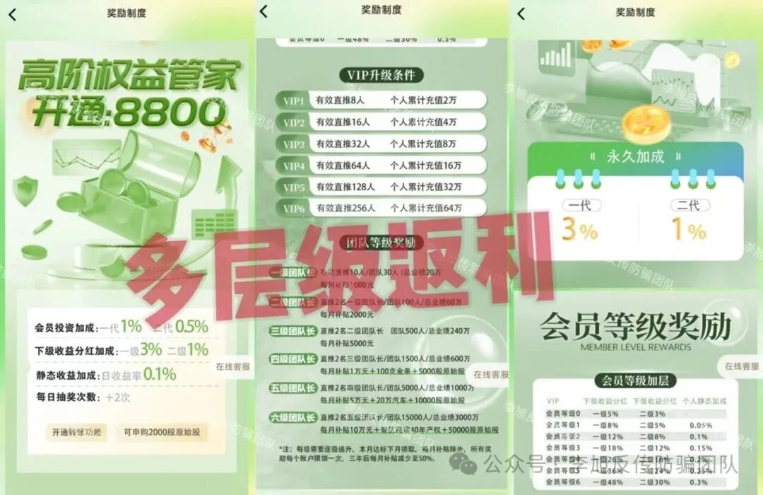 “动态机制”通过多级推荐奖励,并以“团队业绩目标”为噱头,诱导参与者追求所谓“高额收益”。