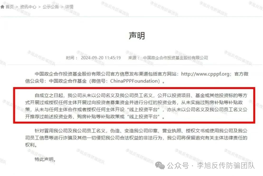 中国政企公司早就发布过声明,从未与任何主体合作或者授权任何主体开设“线上投资平台”。