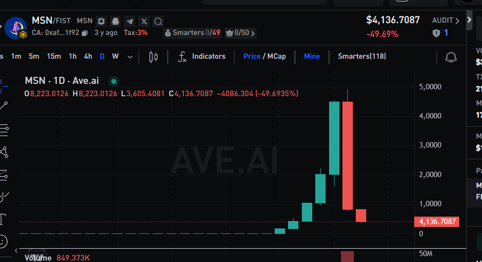 那即是MSN,盘古社区美少女,这个币在大爷大妈的疯狂参与下,一度上涨15000倍,但是最终项目方一句映射,直接暴跌99%。