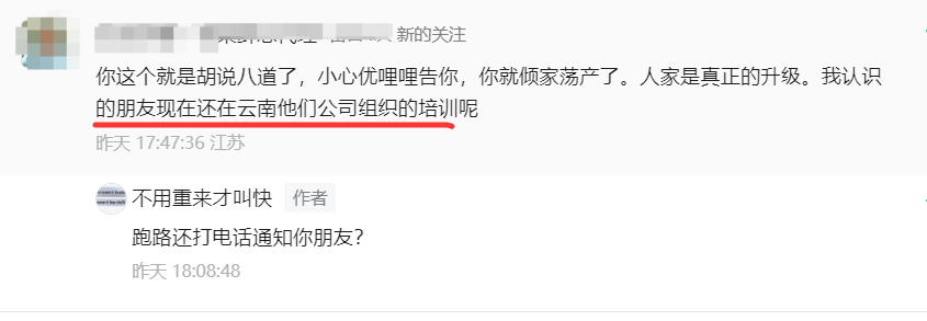 我看有个兄弟留言,说他朋友去云南参加会议,不会跑路,我只能说兄弟,现在的操盘手都不会直接跑路了,都是软跑路,