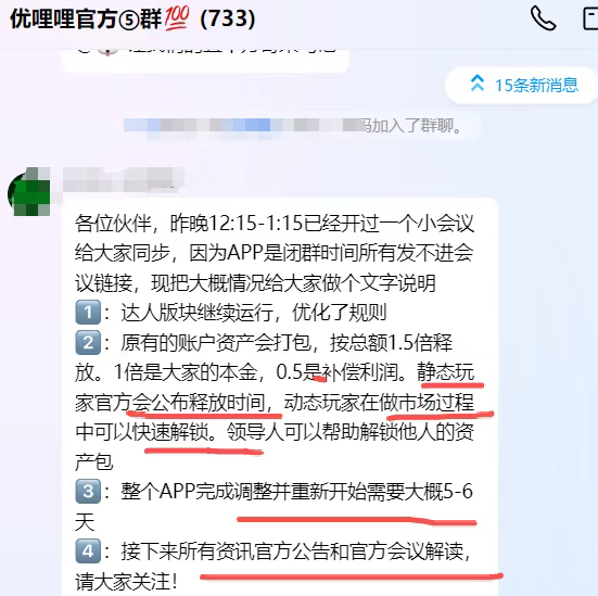 看看前面优哩哩开的维稳大会,说的内容就知道了,不过就是二次重启,还是让你继续缴费,继续充值的玩法,质押你的真金白银给你所谓的优豆?我以为是玩游戏的欢乐豆呢?还继承开了?