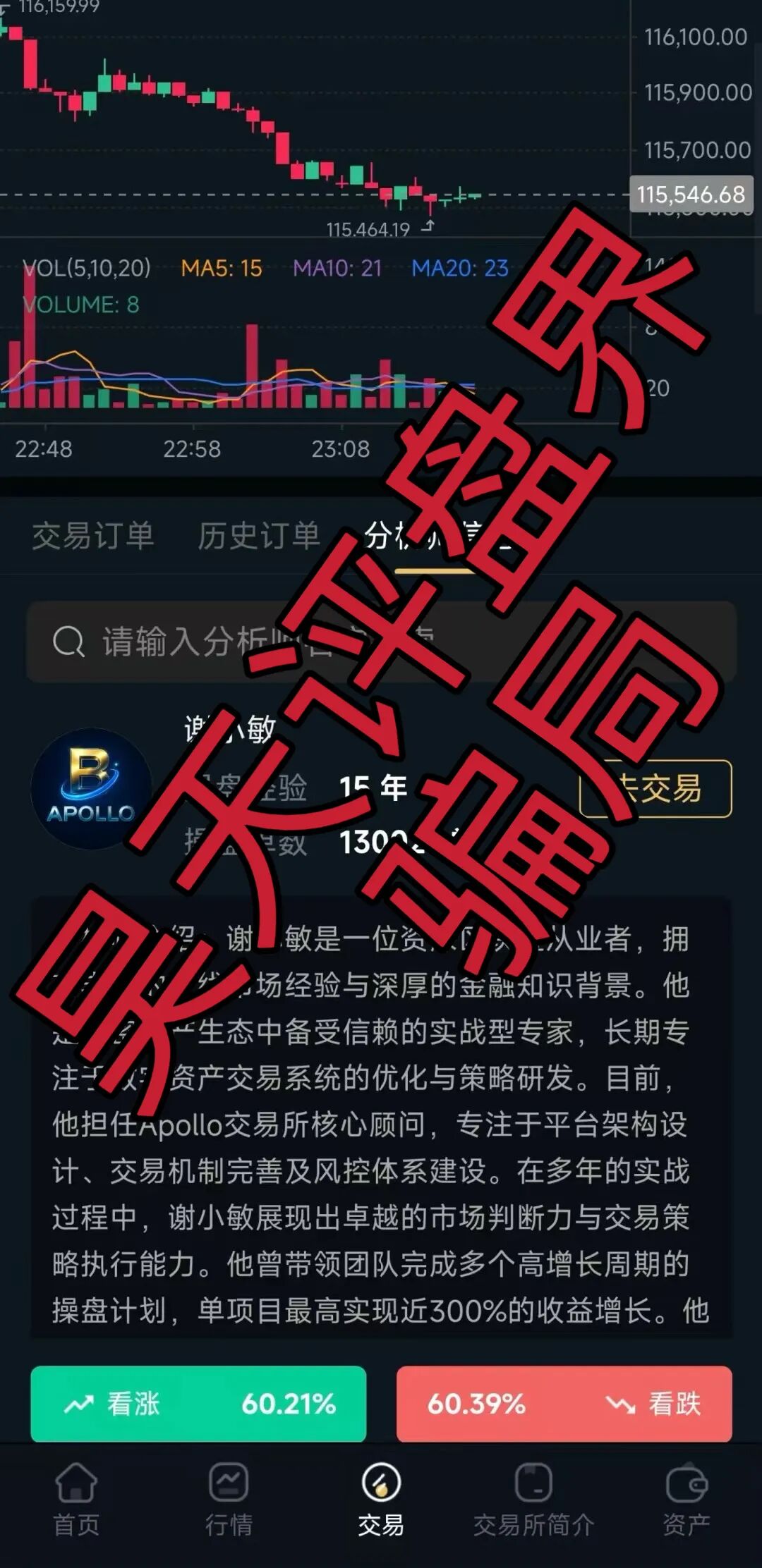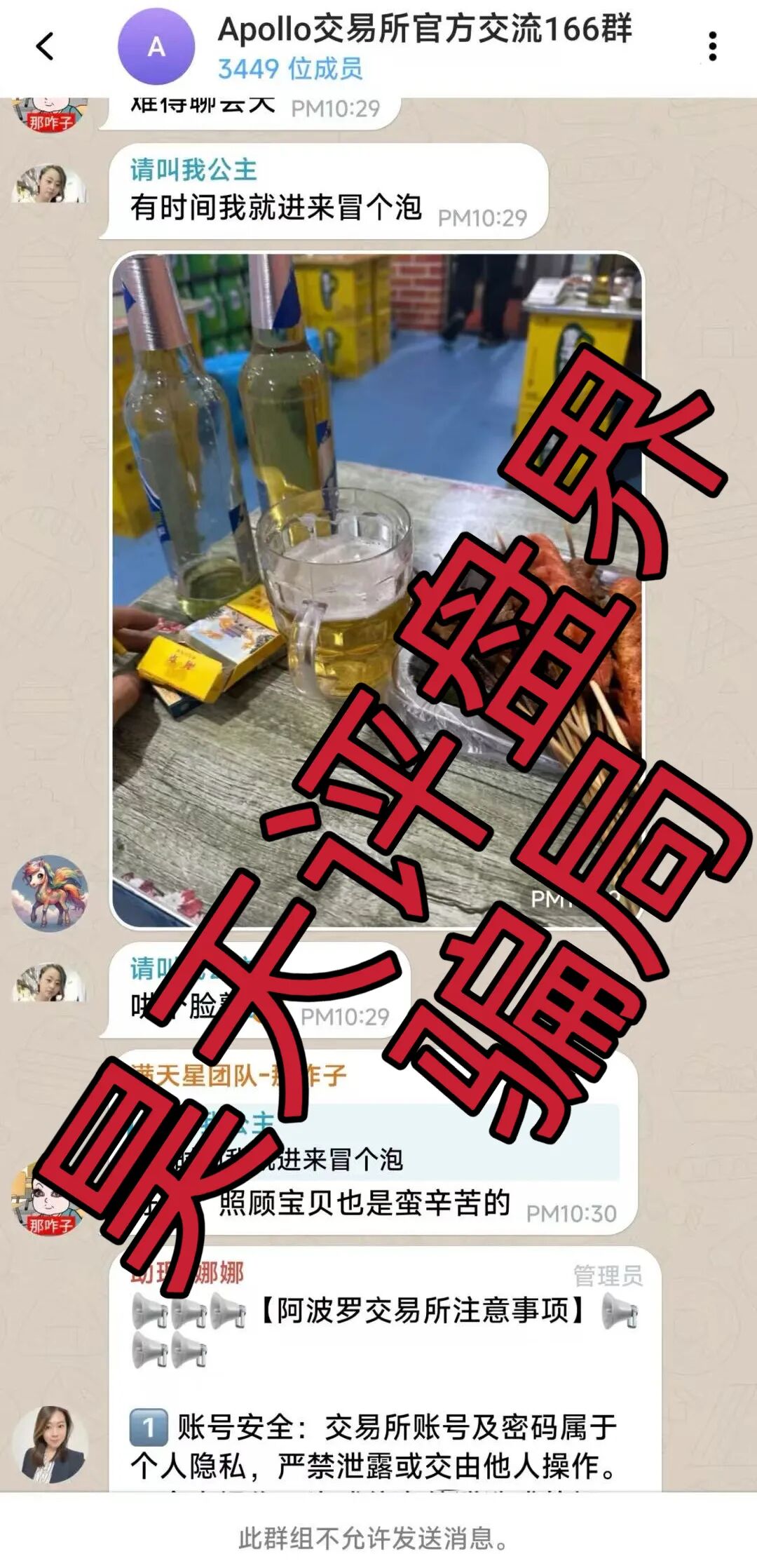 昊天评盘界:近期不少粉丝让昊天曝光一个叫阿波罗交易所的合约跟单类资金盘骗局,据受害者爆料开盘到现在一共40多天,之前宣传说是随进随出的,现在只要你下面会员有退出的就全线封号单割团队,诈骗团伙也是毫无格局,刚开始就割,典型的一轮圈杀猪盘,即将崩盘跑路!