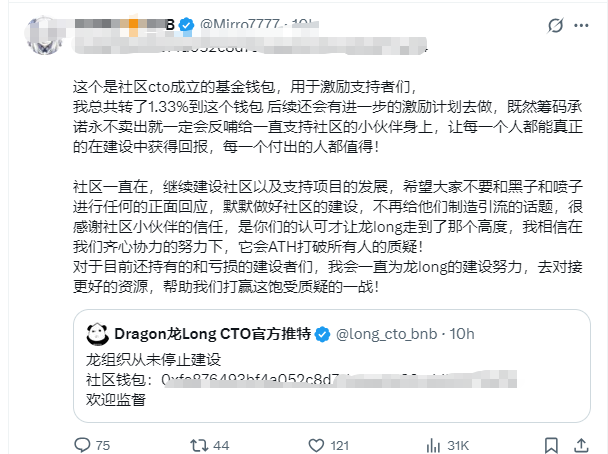 更令人心寒的是吴某事后的回应。面对质疑,他矢口否认与LONG代币的关联,声称自己“仅是早期支持者”,甚至挑衅道:“有本事你扒出来,我赔偿。”这种态度彻底激怒了社区。一位受害者在社交媒体上控诉:“我们信任他的观点,甚至视他为行业明灯,结果他转身就把我们当作提款机。”