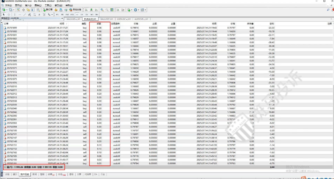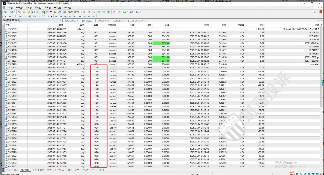 A某称,该代理商要求他将账户交由其操作,并叮嘱不要动账户,双方提前沟通好只交易黄金0.01手。然而事实是,当晚该代理商便进行了重仓操作,疑似为刷取佣金,直接导致账户爆仓。短短一晚,1997美金的账户交易量高达51.78手,其中最大单笔手数达到1.98手。