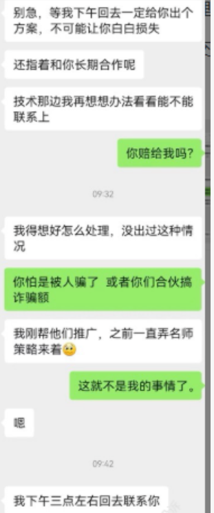 用户A某质疑,该代理商可能使用测试账户的盈利情况作为宣传手段,诱导其入金。事件发生后,A某表示已无法联系到该代理商,通过平台官网咨询此事,也未得到正面回复。A某希望平台能赔偿其损失。