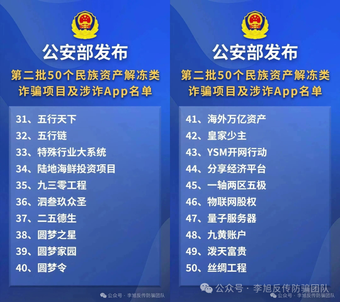 · 2024年,官方部署打击“民族资产解冻类”诈骗犯罪,并分批公布了上百个涉诈项目及App名单;