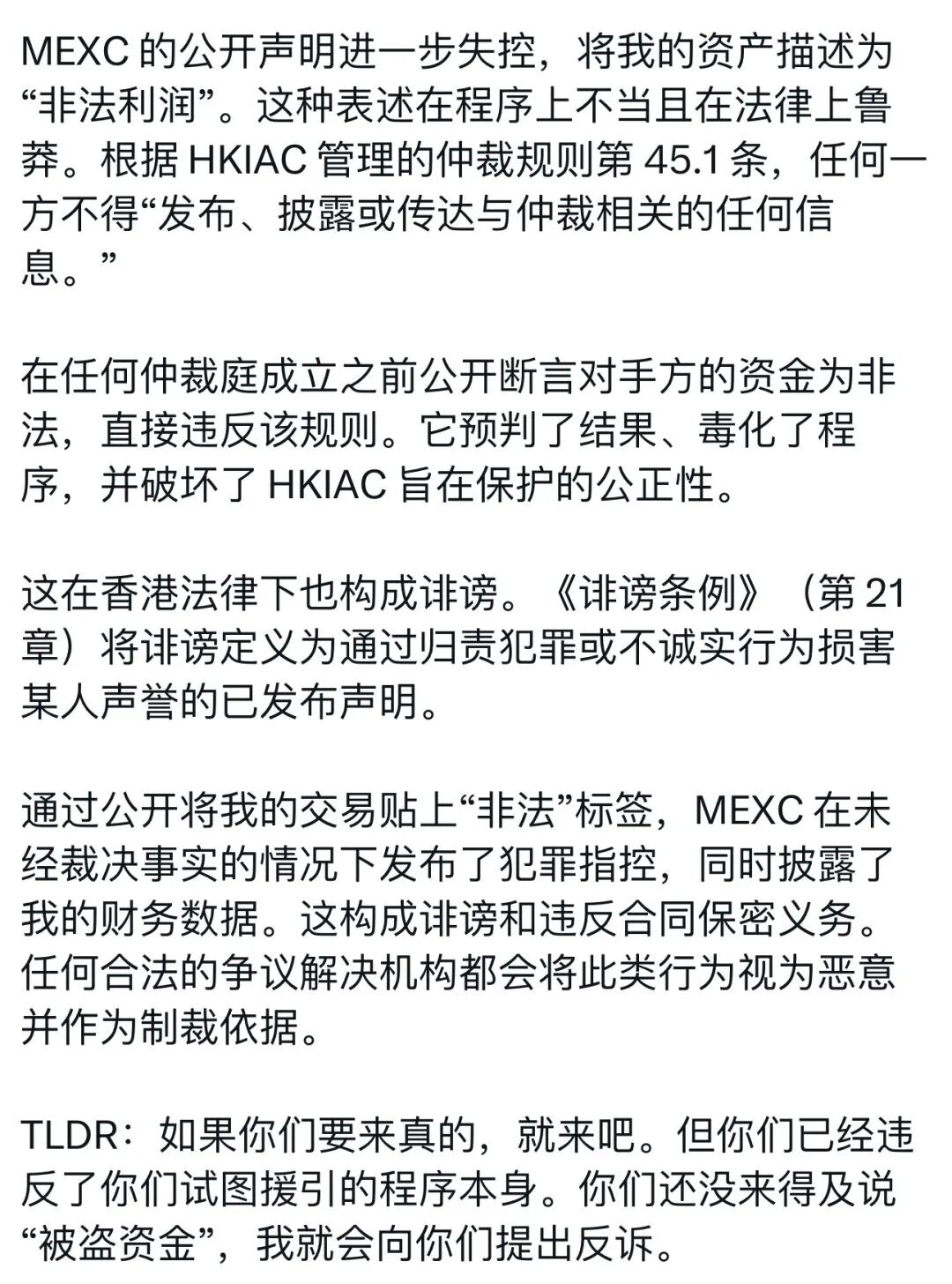 抹茶MEXC交易所这边一看事情闹到这么大,还碰到懂法的,瞬间送了,连夜请示高层,让这位kol把资金提走了。