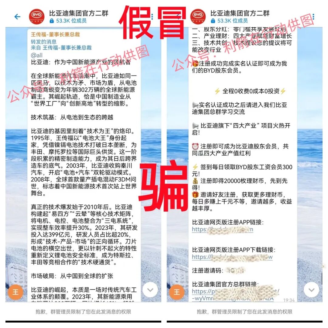提醒:“比亚迪”APP与比亚迪股份有限公司没有关系,这是套牌骗局,前期非法收集参与者信息,后期进行精准诈骗,请大家不要上当被骗!