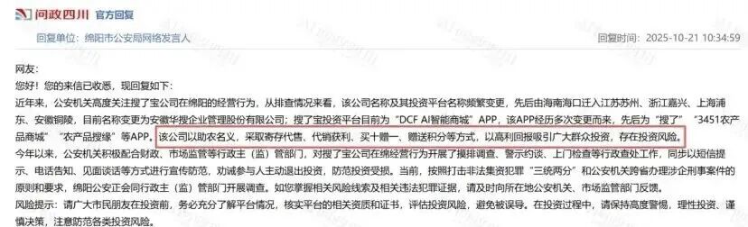 绵阳市群众举报搜了集团涉嫌传销。这项目已经被多次举报过了。