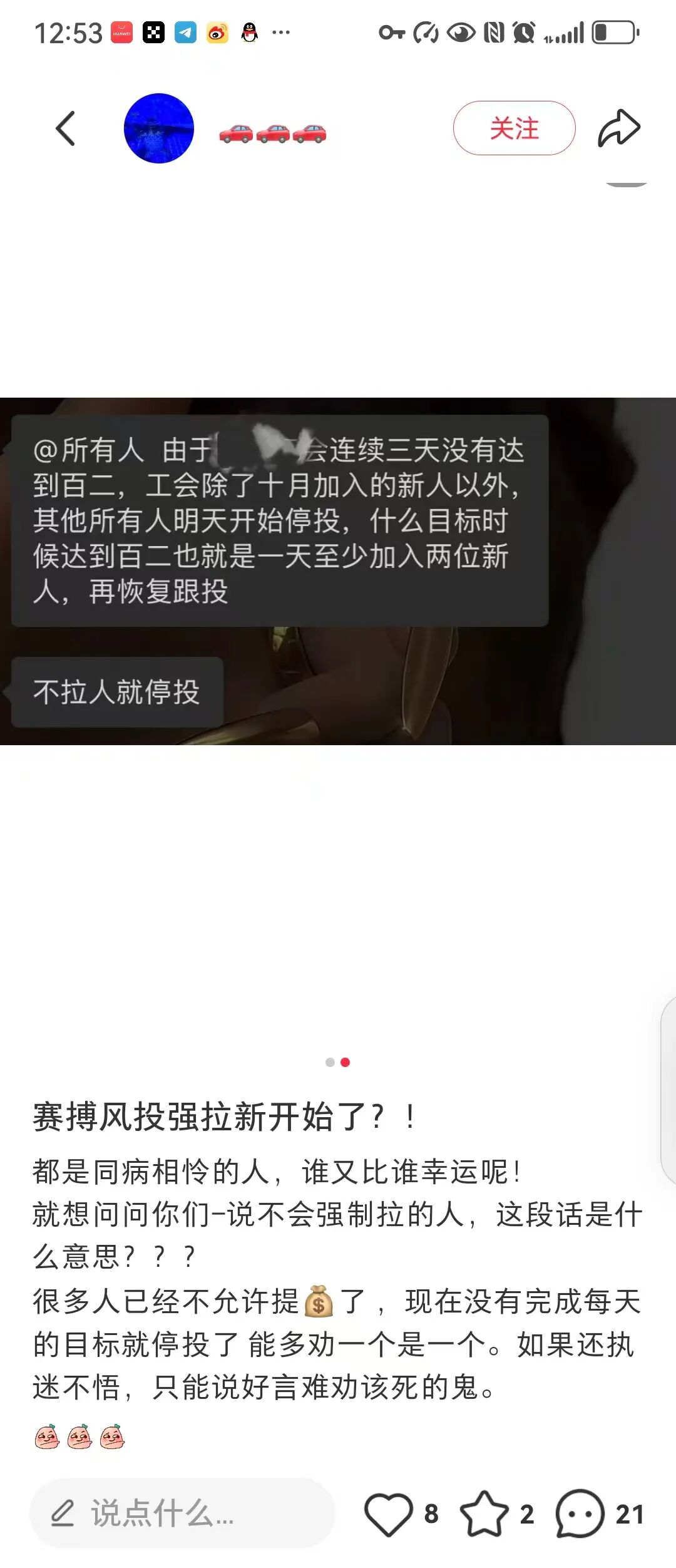 3:只要你的工会 连续三天进人的速度 没有达到百分之2 ,就是一百人团队 一天最低进两个人 不进的话 整个团队开始停投 ,这就很明显了 项目方开始强制拉人了 ,不拉人 是一毛钱不给你赚 甚至提现本金 估计都不让你提现 。一天要求进百分之2 就是要求 拉新的速度追上泡沫的速度 。