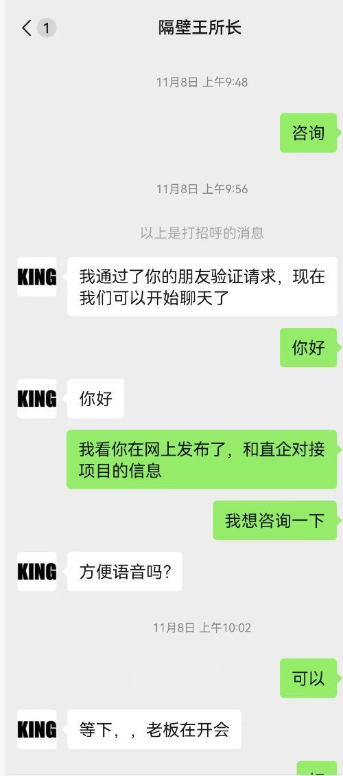 小诺直接扫码添加了广告上的联系人微信。小诺以咨询挂靠业务的身份,和这个人详细聊了几句才知道,这就是为直销企业招揽挂靠公司的广告。经小诺和此人沟通之后得知其合作的直销企业有“海之圣”、“绿活美地”,还有本文曝光的正主“东方药林”。经小诺与此人进一步沟通得知,这三家企业均面向全国招揽挂靠企业和团队。每家公司对挂靠的要求大同小异,差异基本是对月均销售业绩的要求不同。其他的暂且不提,单说东方药林对挂靠公司的销售业绩要求是每月3000万以上。业绩不达标的公司,不会与之合作。看来东方药林这几年的业绩做的不错,小公司根本不入人家的法眼。接着小诺又向此人咨询了几个问题,这个人看小诺对东方药林很上心,就开诚布公的承认了自己是东方药林的员工。并且正在参加东方药林董事长何总主持的公司会议,并且给小诺拍了现场照片,以证实自己的身份。(下面有小诺和这名东方药林员工的通话录音)