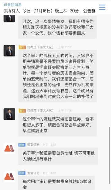 别以为自己聪明能套现离场,等你看到这条消息时,可能已经晚了。就在几天前,“赛博风投”(实为恒富基金)还在群里晒收益、发红包、吹牛说要上纳斯达克,转头就传出崩盘消息——客服集体失联,公告写得像剧本,还煞有介事地说“系统遭攻击,需用户众筹8%保证金配合调查”。