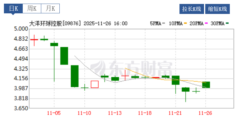 我们在东方财富网检索“大洋环球”,可以检索到两个代码: