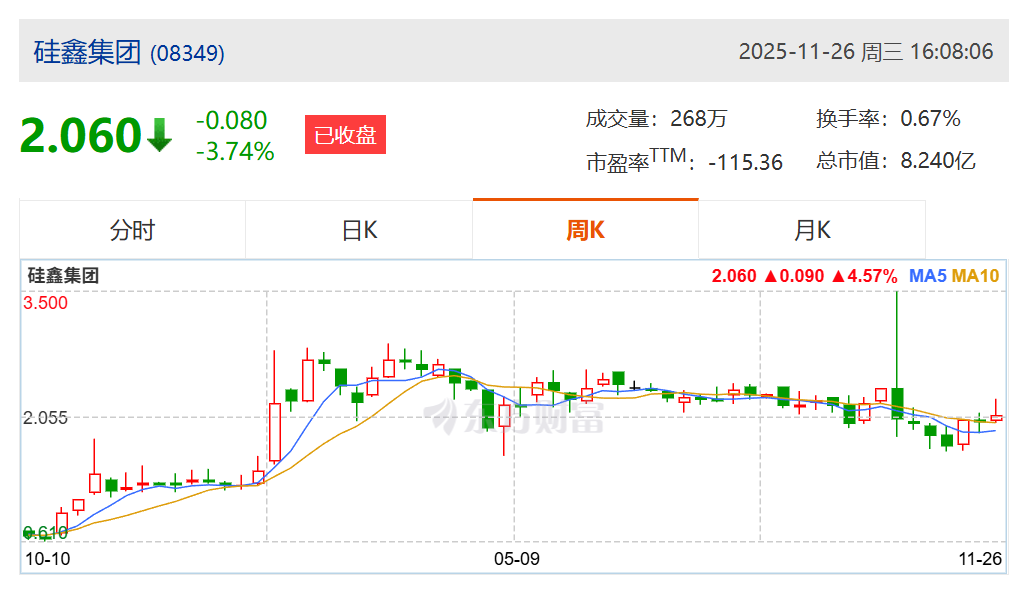 但是,从公开的财报来看,某鑫08349持续亏损,不满足盈利测试标准;目前市值为8.24亿港元,不满足市值要求。