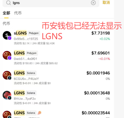 今天,Gate和币安钱包已经搜不到LGNS了!这不是技术故障,而是平台在紧急避险!我神恩在圈内这么多年,太清楚这些大平台的套路了——只有当项目方要暴雷时,他们才会火速下架撇清关系!
