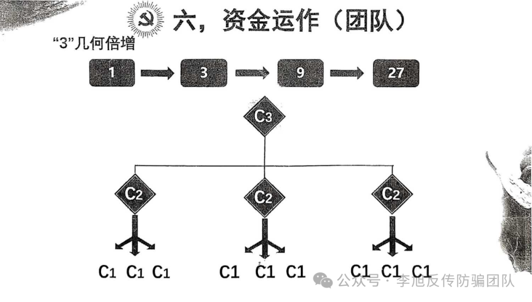 5. 运作机制:依靠团队力量,采用3的几何倍增,还搞公排跳排,说是能公开排放,调动积极性。另外还有同进两岗机制,在发展层完成满点架构后,可直接晋升C1和A岗;还能提前占点,也允许首付60%,剩余部分在特定条件下补齐 。