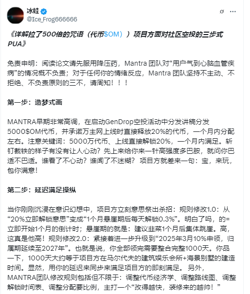 1. 画饼:承诺空投5000万OM(价值约10万美元),宣称“上线即解锁20%”;