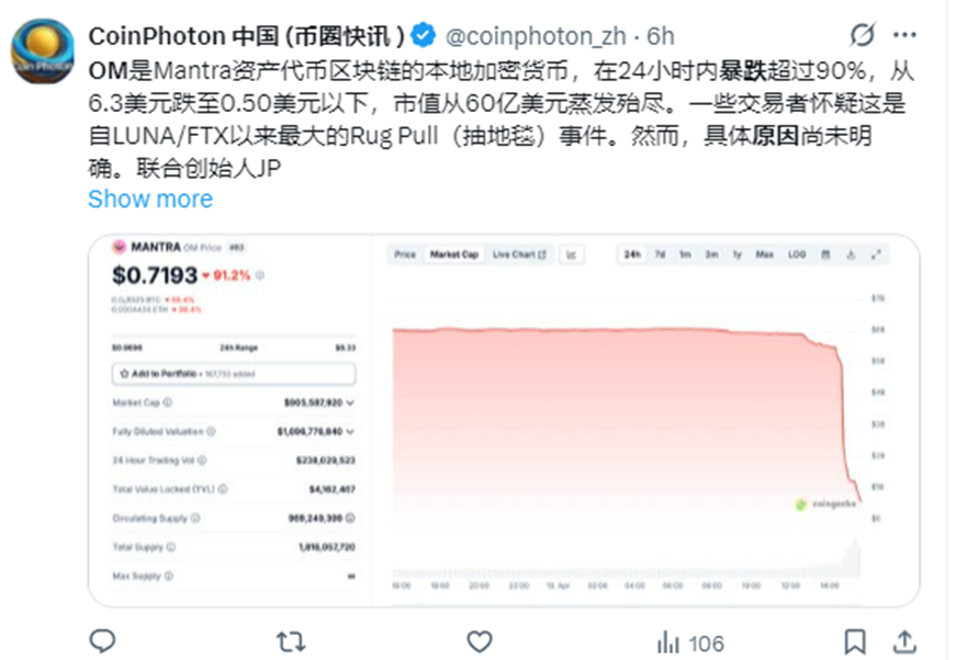 又一个百倍币崩盘!OM代币,布局一两年的时间,人家是赚钱的。