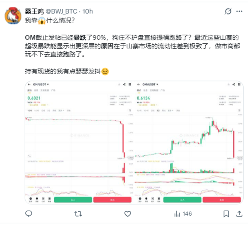 更讽刺的是,暴跌后OM又“诈尸反弹”至1.2美元,再爆一波抄底空头。这场空双杀”像极了赌场老板边收筹码边喊:“亲,是桌子自己塌的哦!”