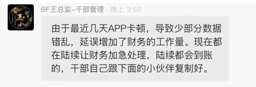 博发BF这个资金盘骗局今天彻底崩盘了,发公告说由于U的通道被监管了,所以无法给大家提现了,又说什么让大家办理离岸银行卡等15天就能提现。相信大部分盘圈老司机应该都就懂了,这就是彻底崩盘跑路了,不可能再给你提现的,不要相信什么办了这个离岸银行卡就能提现,看看前段时间那个共建大湾区骗局也是说办理离岸银行账户就能提现,结果呢,毛都没有。