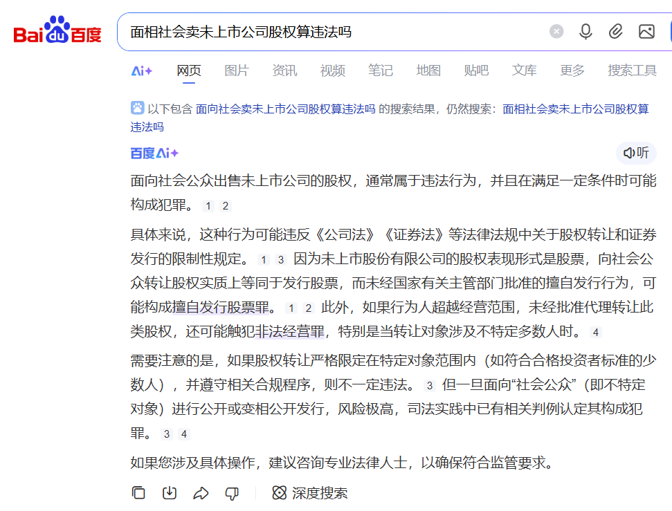 总结:小诺今天就秒音科技卖产品送股权的模式进行了分析,有些商业行为大家自己去百度用AI去提问都能知道答案。没事多学习一下法律常识,也能规避一些投资风险!后续我们会持续关注秒音科技的情况,近期也有很多粉丝向小诺反馈,我们整理资料后会统一发布出来!