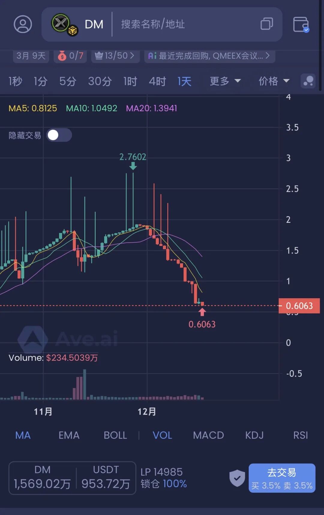 ARK模式和奥拉丁模式一样,币价持续下跌,慢慢割肉,记住每一次的反弹都是你出货走人的好机会。