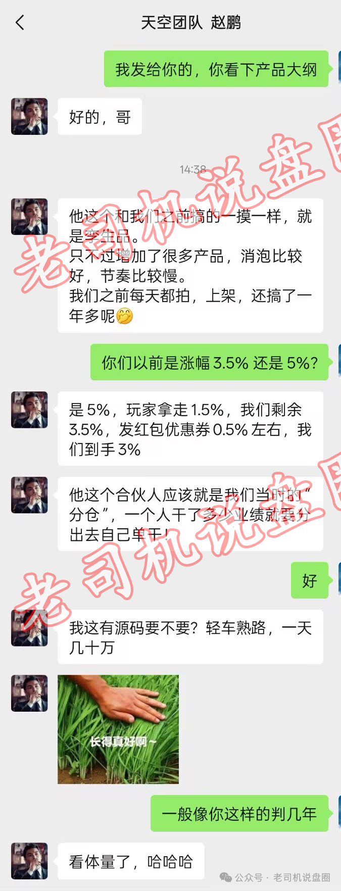 我问了一下之前跟着他们老大开盘子比较幸运的小弟弟