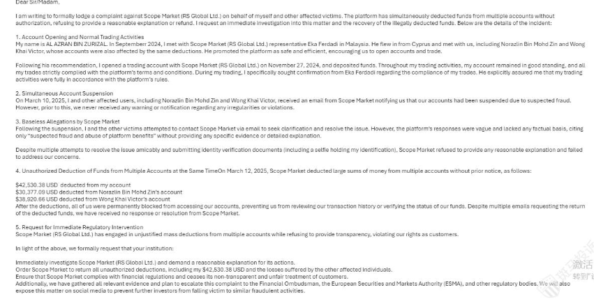 近期,斑马投诉收到了海外用户关于外汇平台斯科普(Scope Markets)的资金账户反馈。