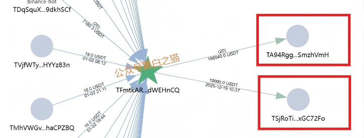 小编随机测试了USDT充值,根据溯源工具查询,这个尾号HnCQ的充值地址已经被标红为危险级别,截至2026年1月11日,注册了两个月时间跑了24万USDT的流水,而转移到尾号hVmH的钱包流水有142万USDT。