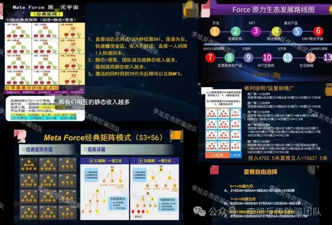 宣称依托区块链技术架构,设置静态收益吸引参与者,同时通过矩阵式无限循环模式为用户提供无封顶的收益空间。借助矩阵模型开展“营销”并生成虚拟货币,还推出带有时间限制的S3、S6等模式,以此激励参与者发展人员组建团队。