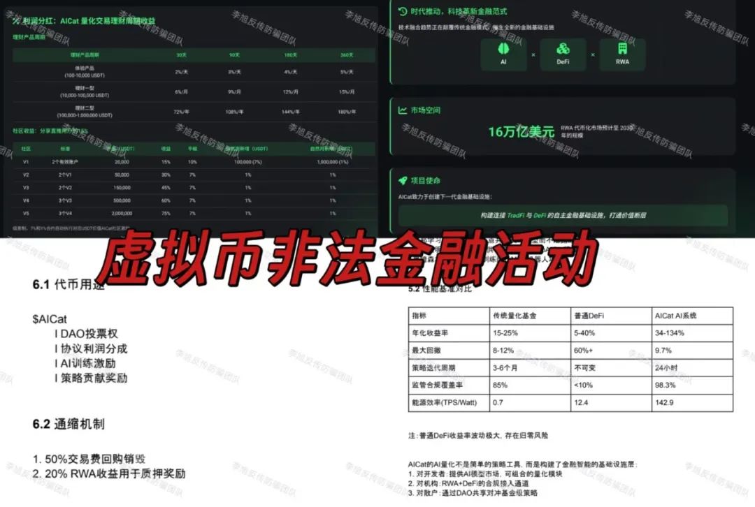 该项目以”AI+DeFi+RWA”为技术噱头,将资产代币化,涉嫌非法发行证券;承诺高收益理财涉嫌非法集资;拉人头组建层级符合传销特征。此类模式借金融创新之名,行资本炒作之实,核心依赖新投资者资金维持运转,最终可能因资金链断裂导致投资者损失。