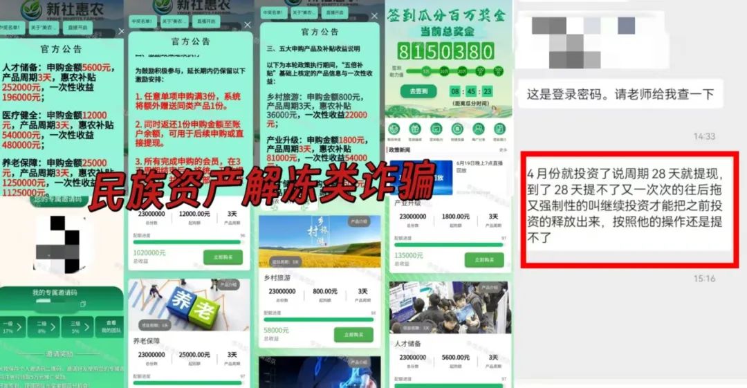 打着“惠民”旗号以“签到瓜分百万奖金”吸引参与者实名注册加入。随后推出虚假投资理财项目,利用各种利好政策刺激参与者投资认购。邀请新人享三级分佣。