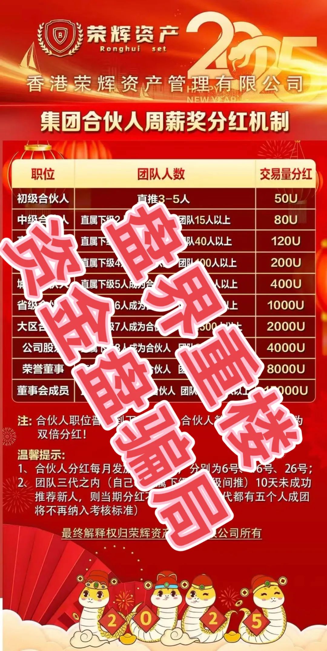 今天爆料一下荣辉资产(BXO交易所)跟单类资金盘骗局,之前就已经崩盘重启过一次了,然后又拉了一波鑫康嘉的韭菜,已经开始单割,他们搞了个所谓的“养老群”,美其名曰让你安心赚生活费,实际上就是锁死你的本金。每天逼你跟两单,每月最多提100U,想全提?门儿都没有!不拉人头?那就别想退出,纯纯的杀猪盘套路。