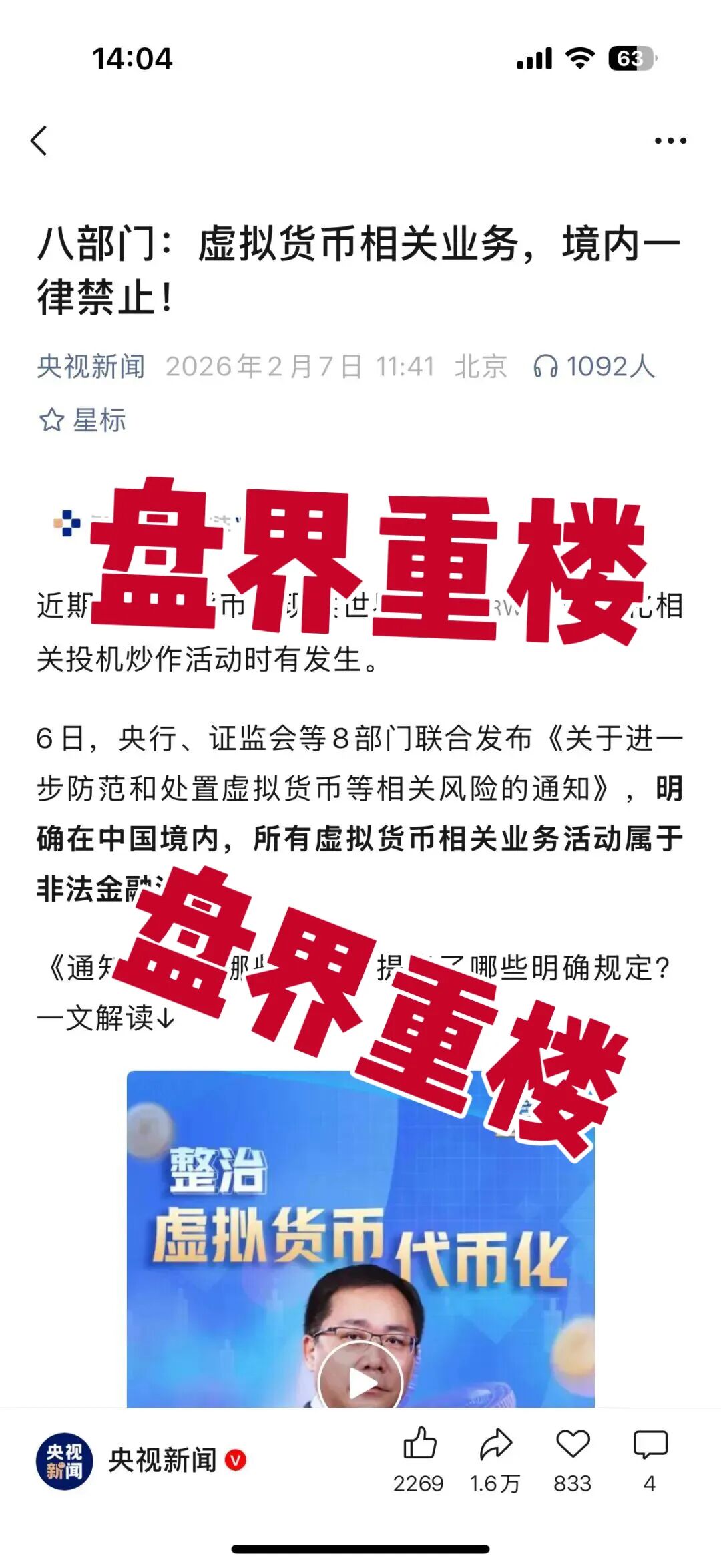 来个更关键的:2月6日,央行、证监会等8部门刚发了通知,明确在中国境内,所有虚拟货币相关业务活动都属于非法金融活动。