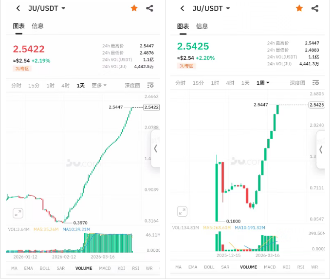 从2026年2月开始,聚币便着手布局。它将平台币JU的价格从0.4美元稳步推高至2.5美元,同时,最关键的诱饵——100倍合约杠杆——被高调推出。在高额回报的诱惑下,无数投资者将身家性命押上赌桌,开出了大量的多头合约。然而,他们不知道的是,自己所有的持仓数据,在平台后台都一览无余。