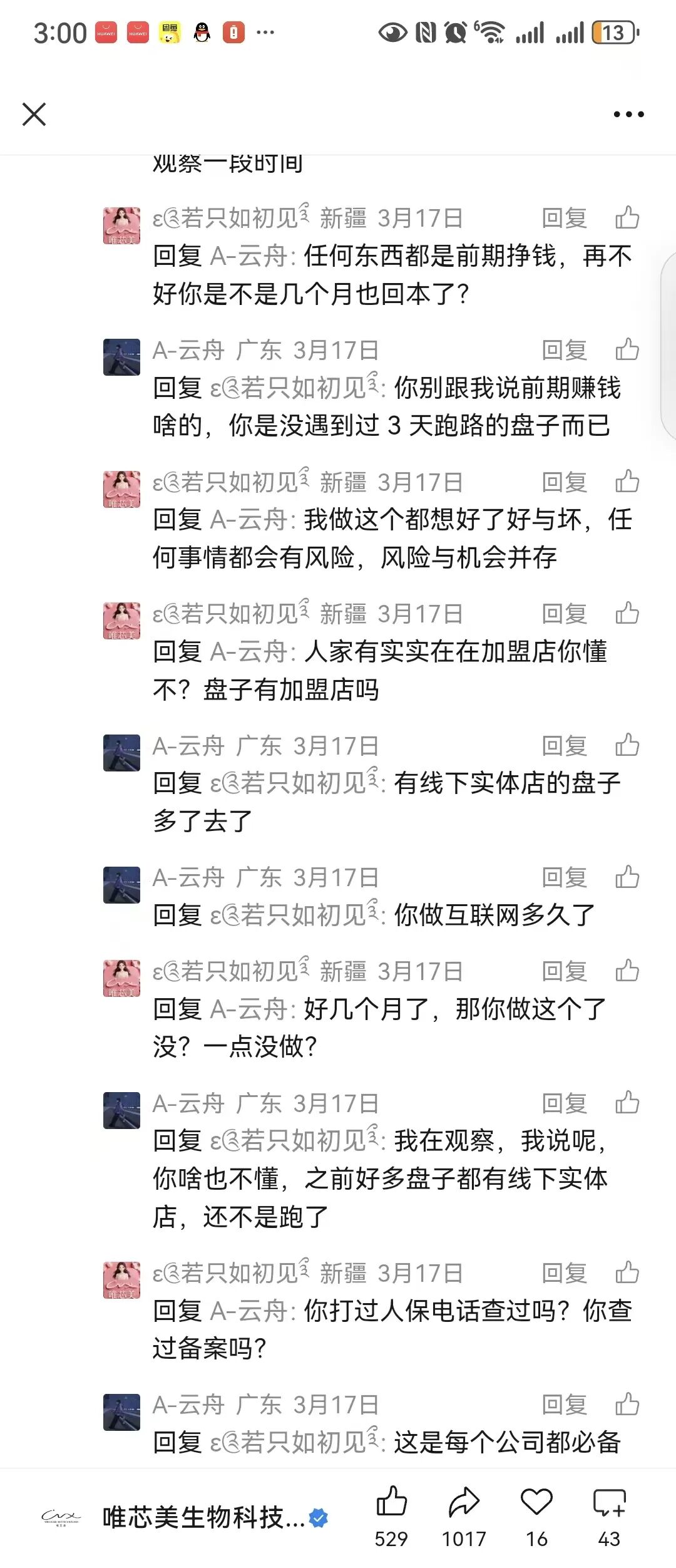 当然 还是有很多明白的 轮回看了这家公司的公众号 下面的评论 ,游客和会员吵起来,一个说是资金盘 一个说他们是正规企业 ,到底正规不正规 崩盘的时候这些会员可能才会明白 。